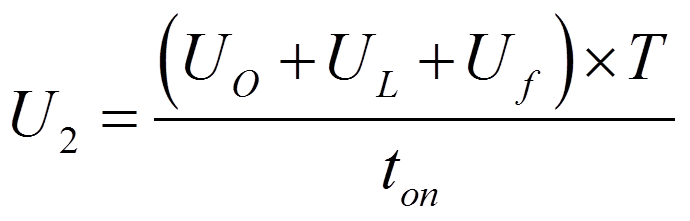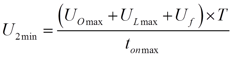 UL是輸出扼流圈在內次級線圈的電壓降,Uf是輸出二極管的正向電壓。最低的次級電壓U2min為: