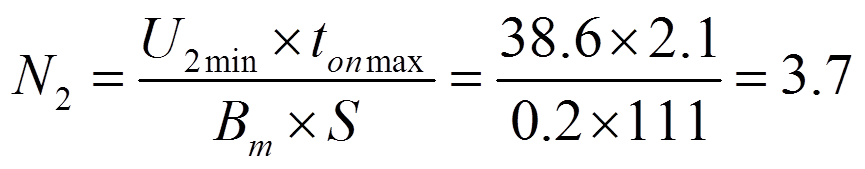 因而次級N2 = 4,式中Bm為磁心的磁通密度(T);S為磁心的有效截面積(mm2)。初級線圈的匝數則是以下公式確定。
