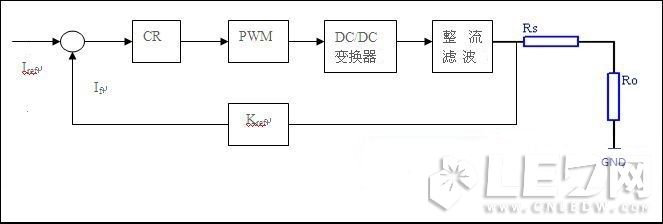 下圖是恒流控制反饋系統圖。圖中Iref是電流設置基準;CR是電流PI調節;Kfi是電流取樣反饋系數;RS、Ro是電流取樣電阻和負載電阻。該系統采用是電流模式控制,可以檢測變換器輸出電流,適當地選取反饋系數Kfi, 通過P(比例)、PI(比例積分)、PID(比例積分微分器)實現恒流控制。在反饋系數不變情況下,也可以通過改變電壓或電流實現恒流值控制。