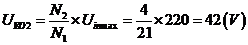 續流二極管VD2上的反向電壓UVD2與輸出變壓器次級電壓的最大值是相同的。根據單端正激式變換器公式得: