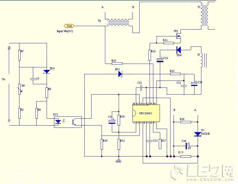 過電壓保護電路由光電耦合器PC1、R16組成的。當輸出電壓超過15V時,光電耦合器PC1動作,經過引腳2接入反饋電壓電路,使輸出級鎖定為低電平。