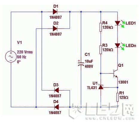 由于TL431是2.5V基準,故恒流取樣電路的損耗極大,不適合做輸出電流過大的電源。而此電路的致命缺陷是不能空載,故不適合做外置式的LED凈化燈電源,所以下面我們對線路的一些缺陷進行了改進。