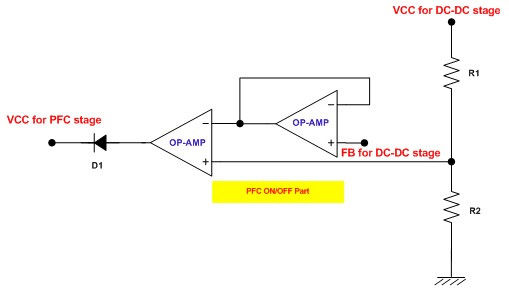 建議使用一種簡單的輔助電路,將PFC的工作與準諧振反激DC-DC轉換器進行同步,因為當DC-DC轉換器開始間歇工作時,PFC級也能夠進入間歇工作模式。一旦第二級反激轉換器結束間歇模式工作,PFC級會立即退出間歇工作模式。圖1為該輔助電路的工作原理。PFC級的偏置電源受到準諧振反激DC-DC轉換器反饋的控制。