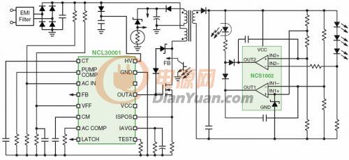 1) 基于NCL30001的電流可調節恒流功率因數校正區域照明LED電源