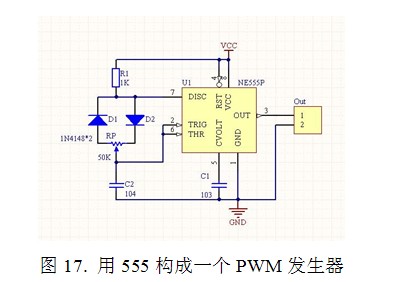具體獲得PWM信號的方法為在墻上的PWM開關和電位器里安裝一個PWM發生器。這個PWM發生器可以很容易地用一個555芯片形成(圖17)。